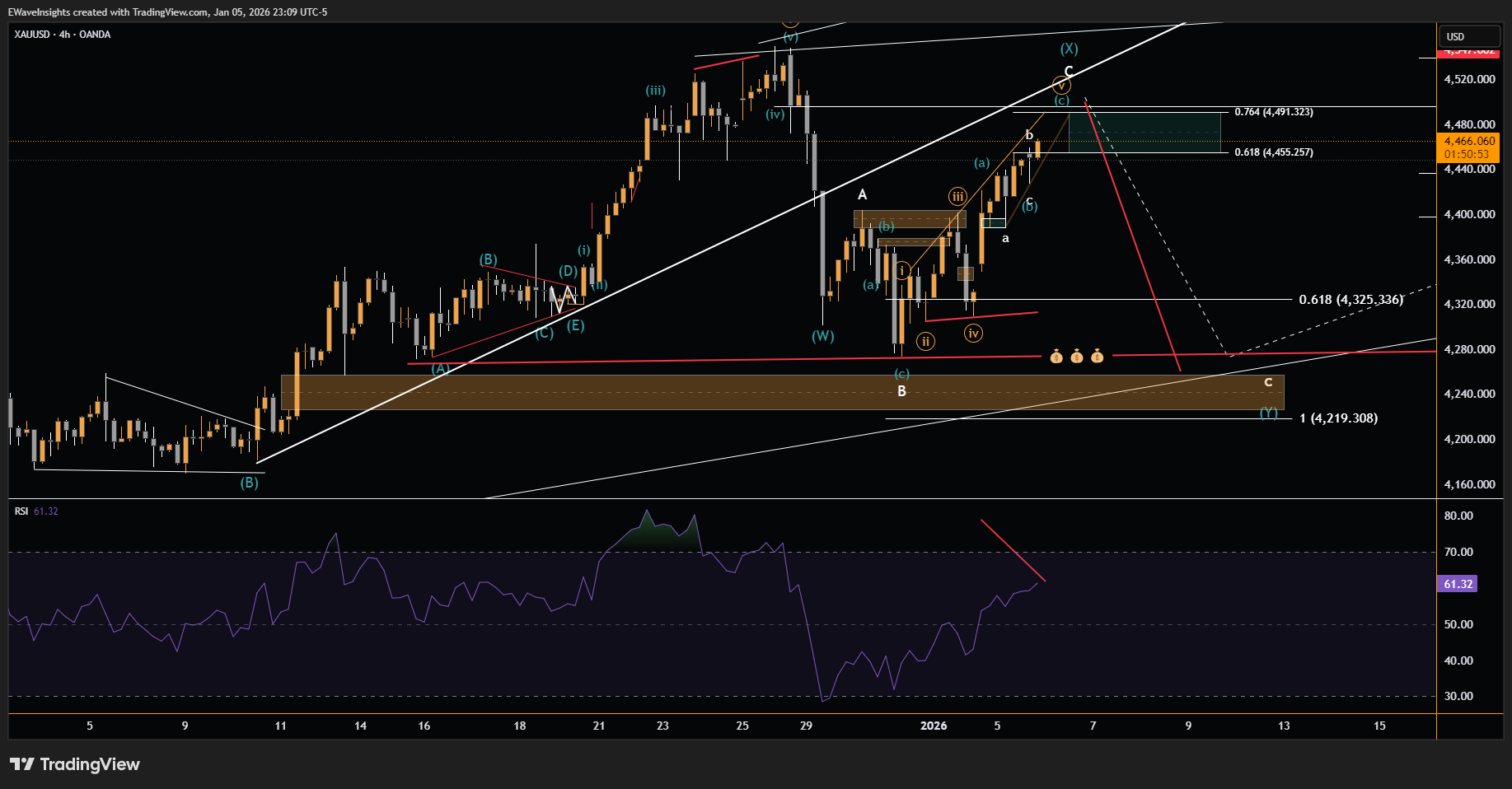 | Entry Zone(s) | 4,440 – 4,400 (breakout below wedge) |